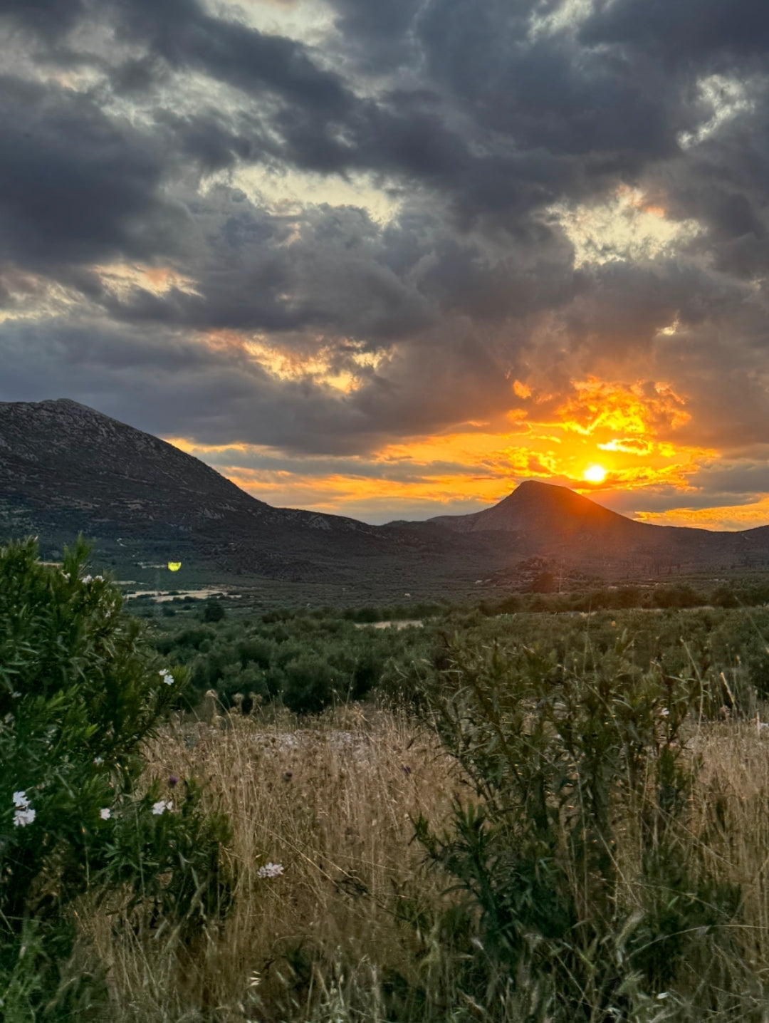 Oliivitarhojen hiljaisuus ja auringonlasku Peloponnesoksella, missä OILI saa alkunsa.